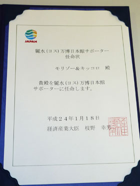 モリゾー・キッコロが麗水博日本館サポーターに任命されました!一般財団法人地球産業文化研究所 GISPRI。