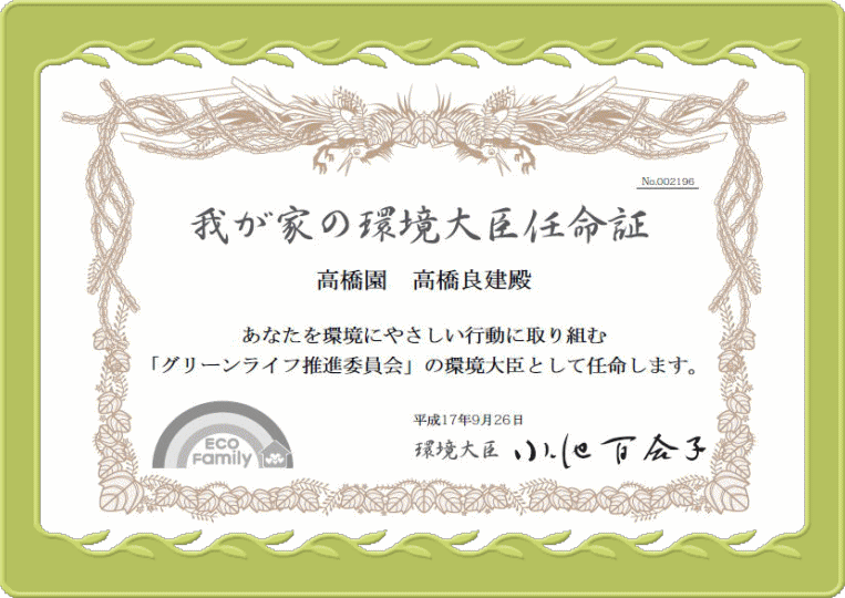 みどりの広報大使の任命状盾を作製 – LaLuz。