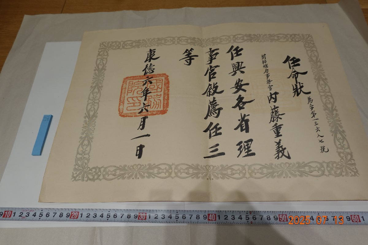 rarebookkyoto 362 満洲国・任命状書・ 為描きある・透かし印有 省理事。