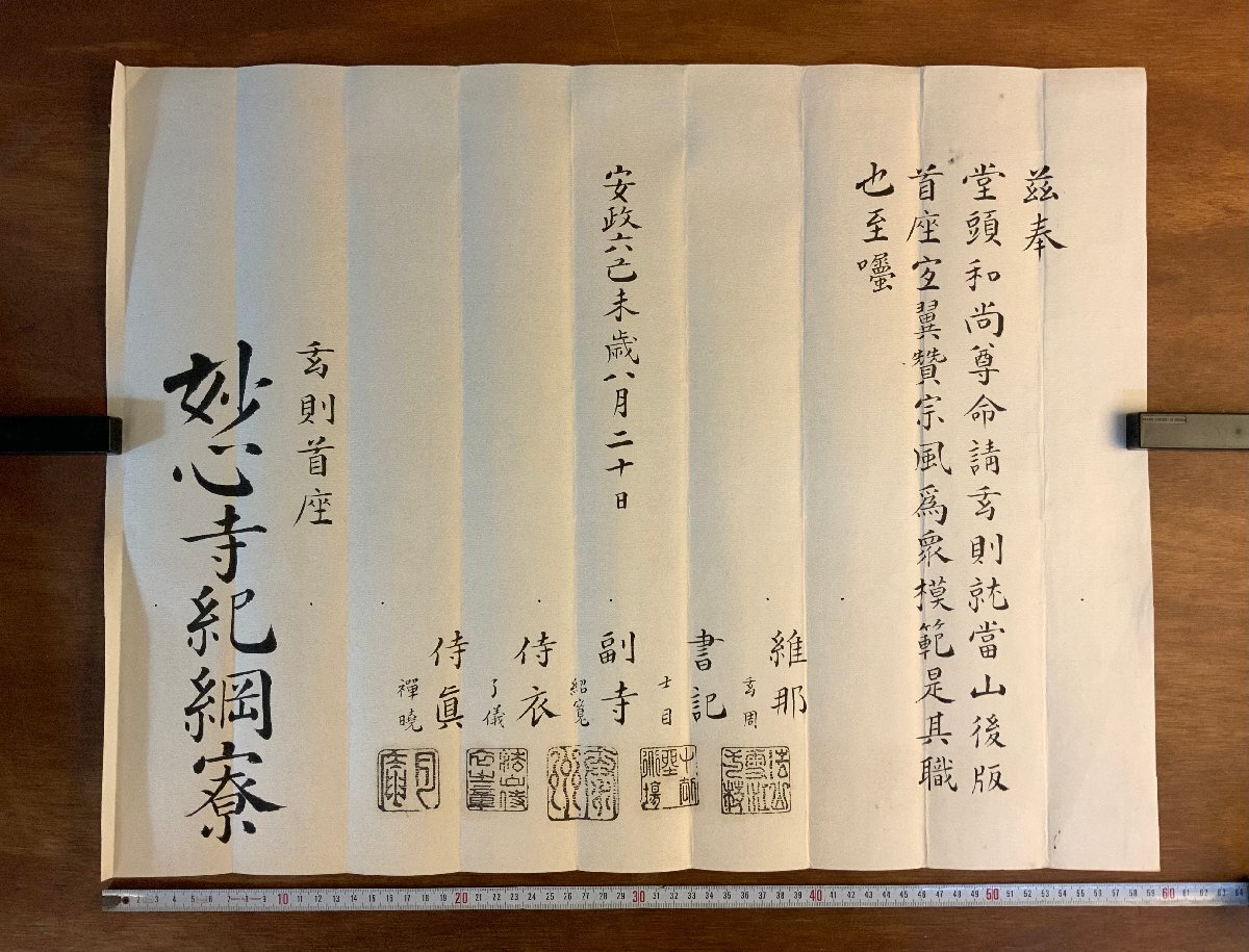 HH-7827 □送料込□ 安政6年 妙心寺紀元綱寮 玄。