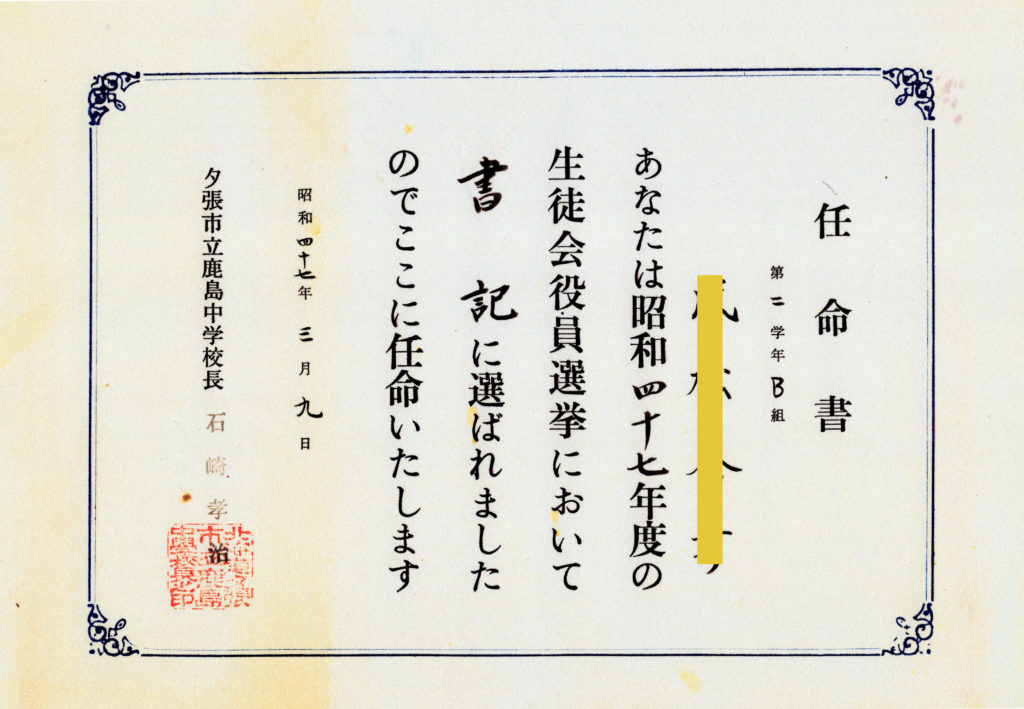 任命状の重さ – 愛知県豊明市 星城中学校学校法人 名古屋石田学園。