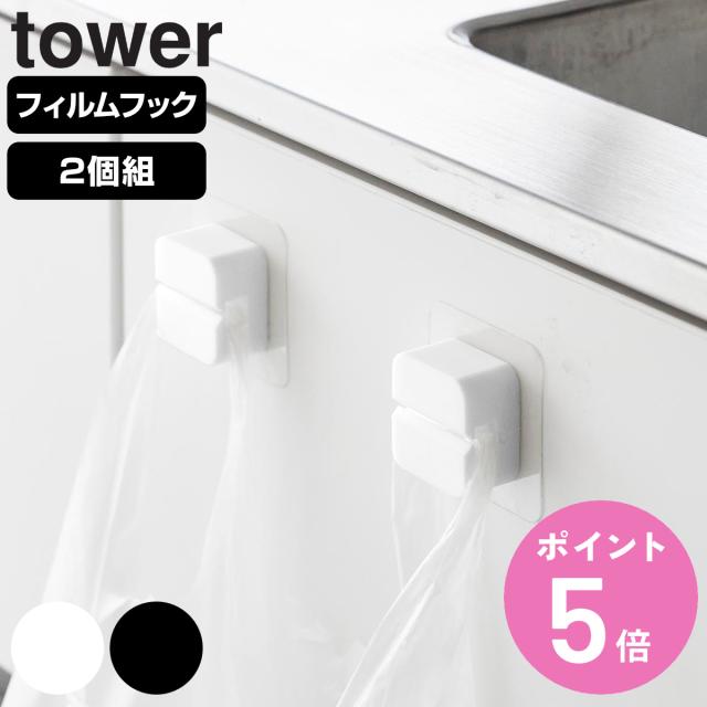 特典付きフィルムフック M 4個組 タワー山崎実業 tower フック フィルム 強力 剥がせる 4個セット 壁掛け 収納 引っ掛け 透明キッチン 浴室 お風呂 賃貸 壁 穴開けない 掛ける収納 北欧 おしゃれ モノトーン yamazaki ブラック ホワイト 5666 5667 公式。