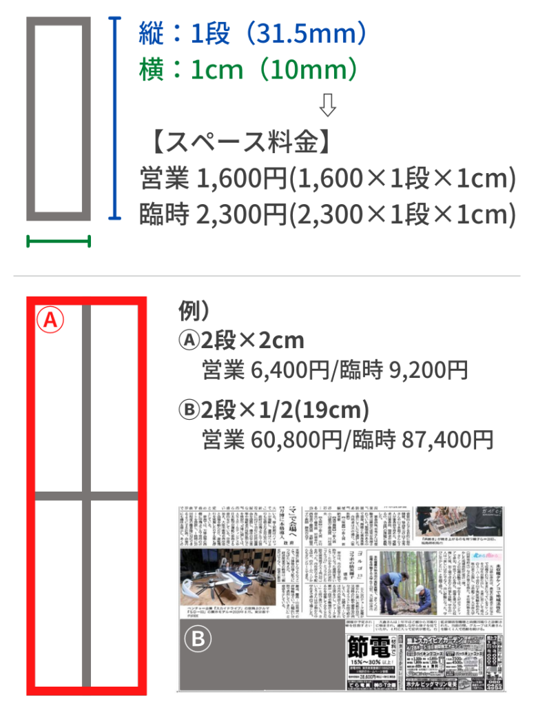 新聞記事下広告の原稿サイズのしくみ記事下広告・雑報広告 小枠広告 など新聞広告の新聞広告ナビ。