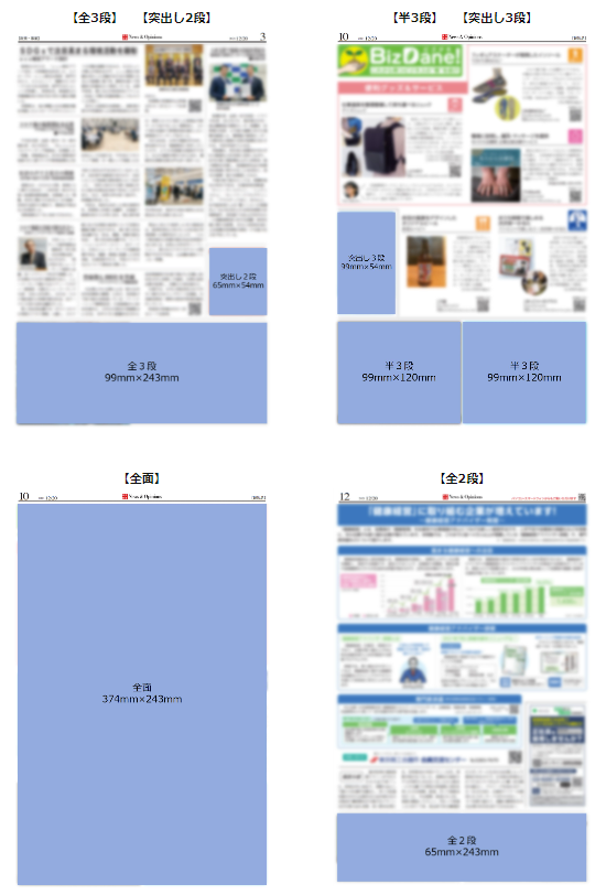 紙面掲載広告 サイズ 料金表南海日日新聞 クロスメディア。