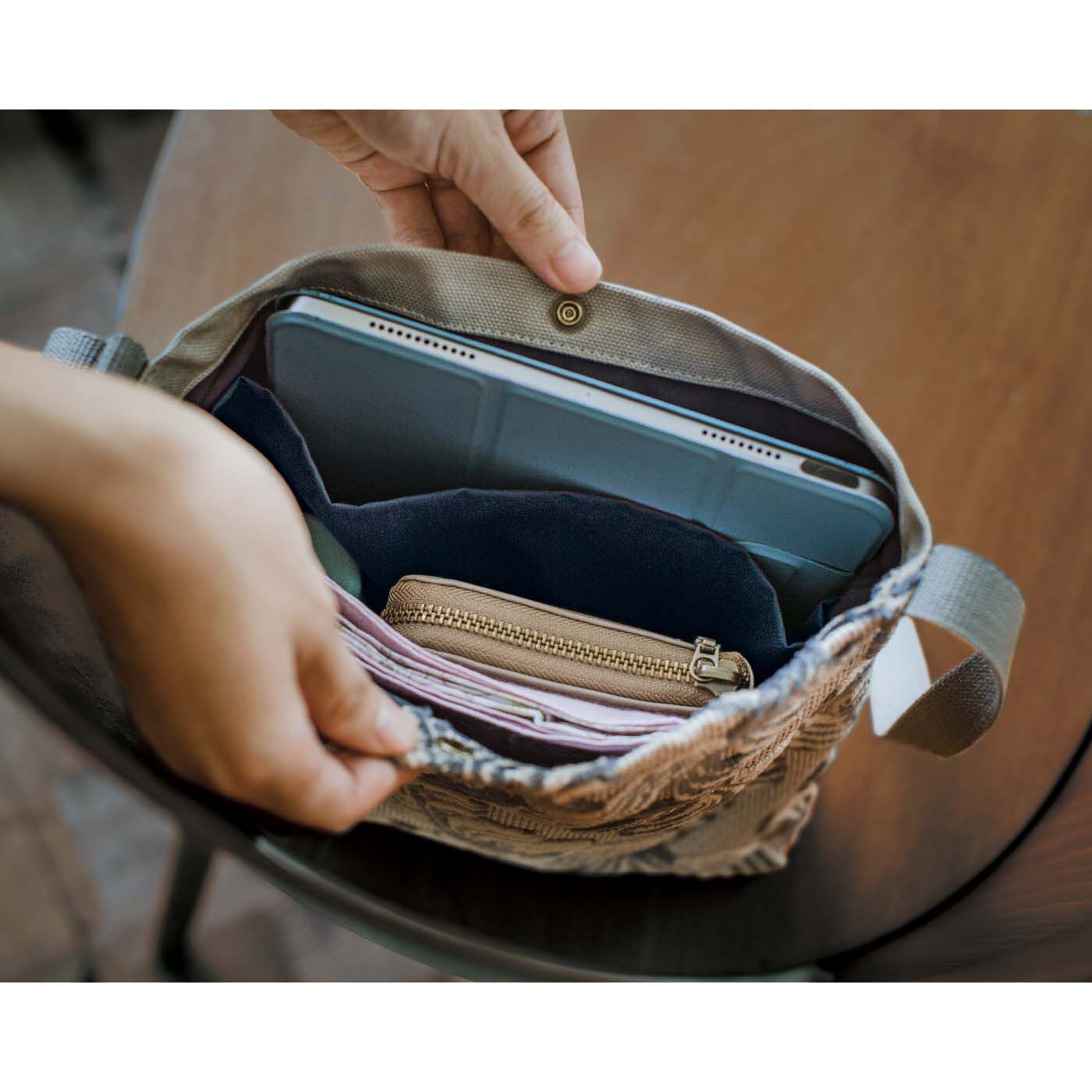 el:ment ヨーロッパから伝わる優美な立体的織物 必需品がまとまる金 華山織ショルダーバッグの会el:ment エル:メント フェリシモ 公式通販。