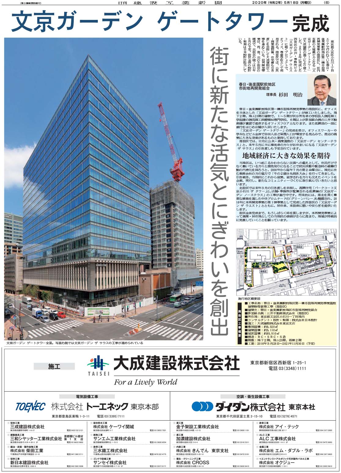 文京ガーデン ゲートタワー 完成 – 日刊建設工業新聞。