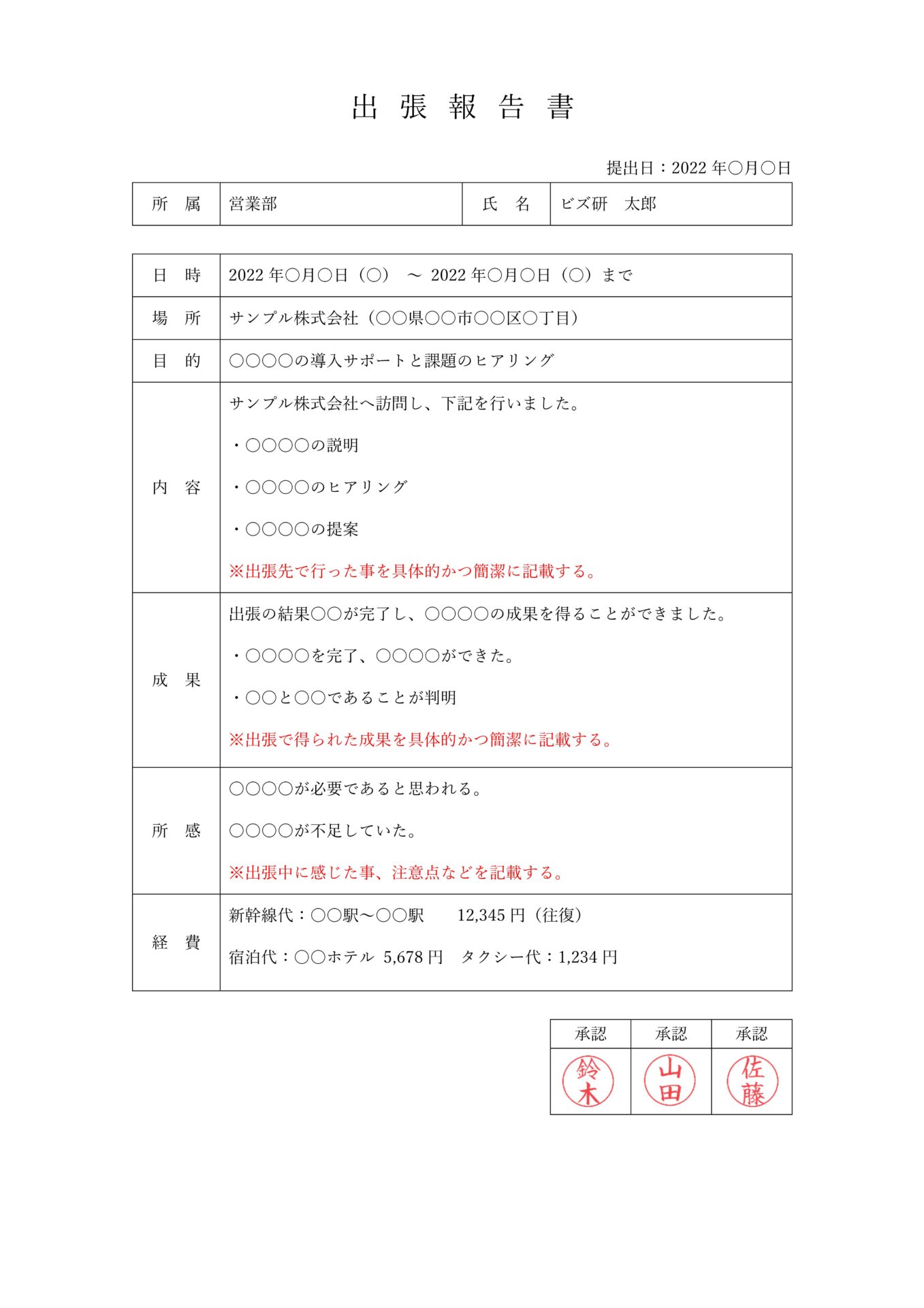 すぐに使える出張報告書テンプレート Word 無料・登録不要ビズ研。