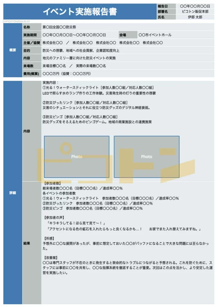 イベント報告書テンプレート 無料ダウンロード Excel形式で今すぐ使える☆報告書 の役割とは?子供向けイベント企画、キッズワークショップ運営株式会社ピコトン。