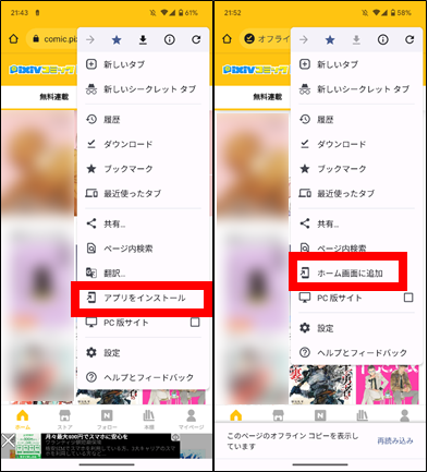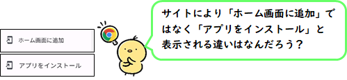 Android Chrome「ホーム画面に追加」ボタンが「アプリをインストール」と表示される原因について。
