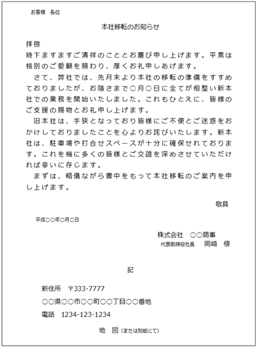 引越し・移転・転居のお知らせ、通知状、挨拶状の書き方と例文。