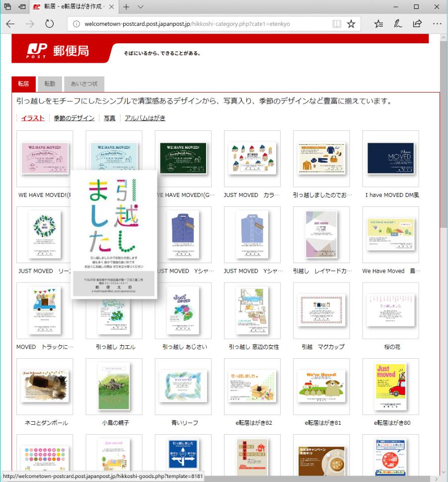 引越しはがき デザイン見本即日印刷プリントメイト。