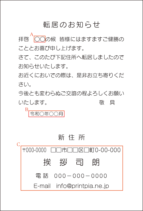 引越しはがき・転居のお知らせ 例文 文例集 プリントメイト。