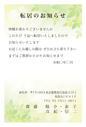 引越し・転居の挨拶状文例・テンプレート-挨拶状印刷.jp 最短当日出荷。