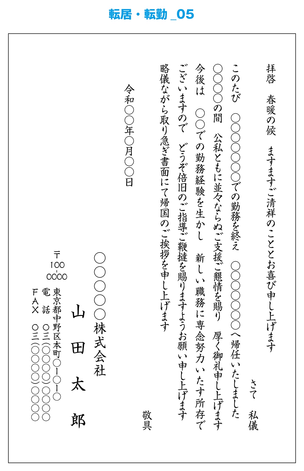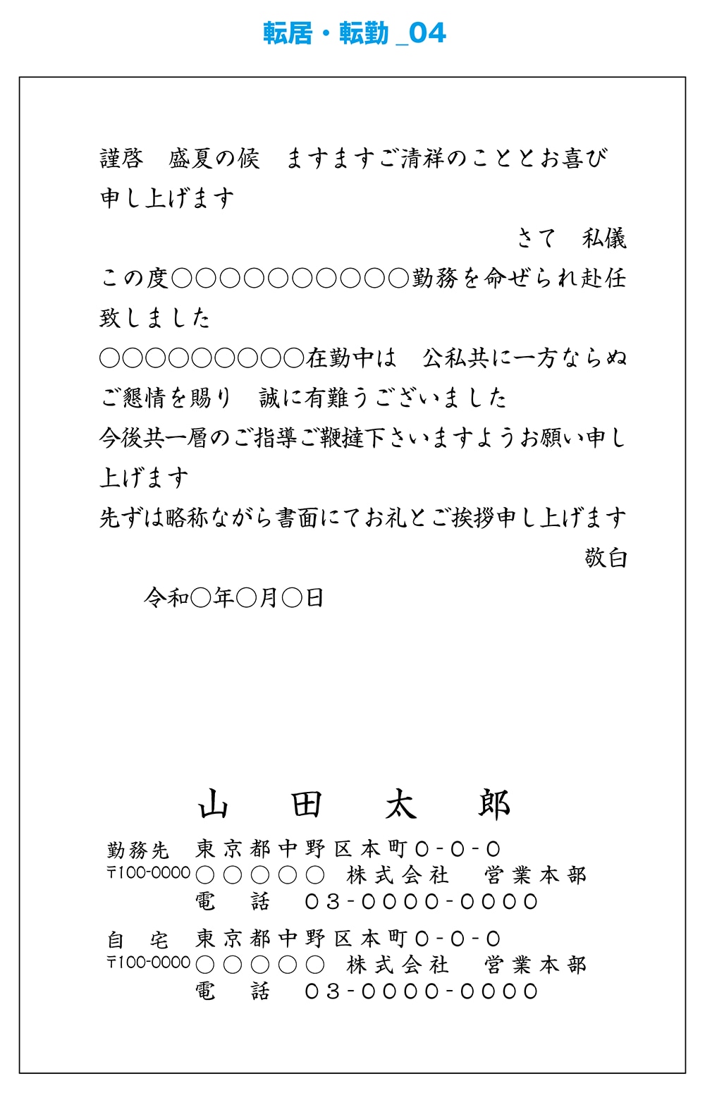 挨拶状 転勤・着任 はがき例文と簡単な書き方印刷プリントメイト。