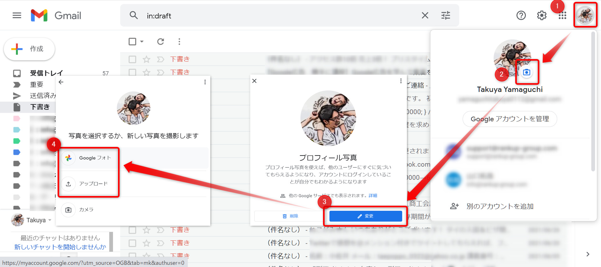 Gmail 相手のプロフィールアイコンを変更する方法。