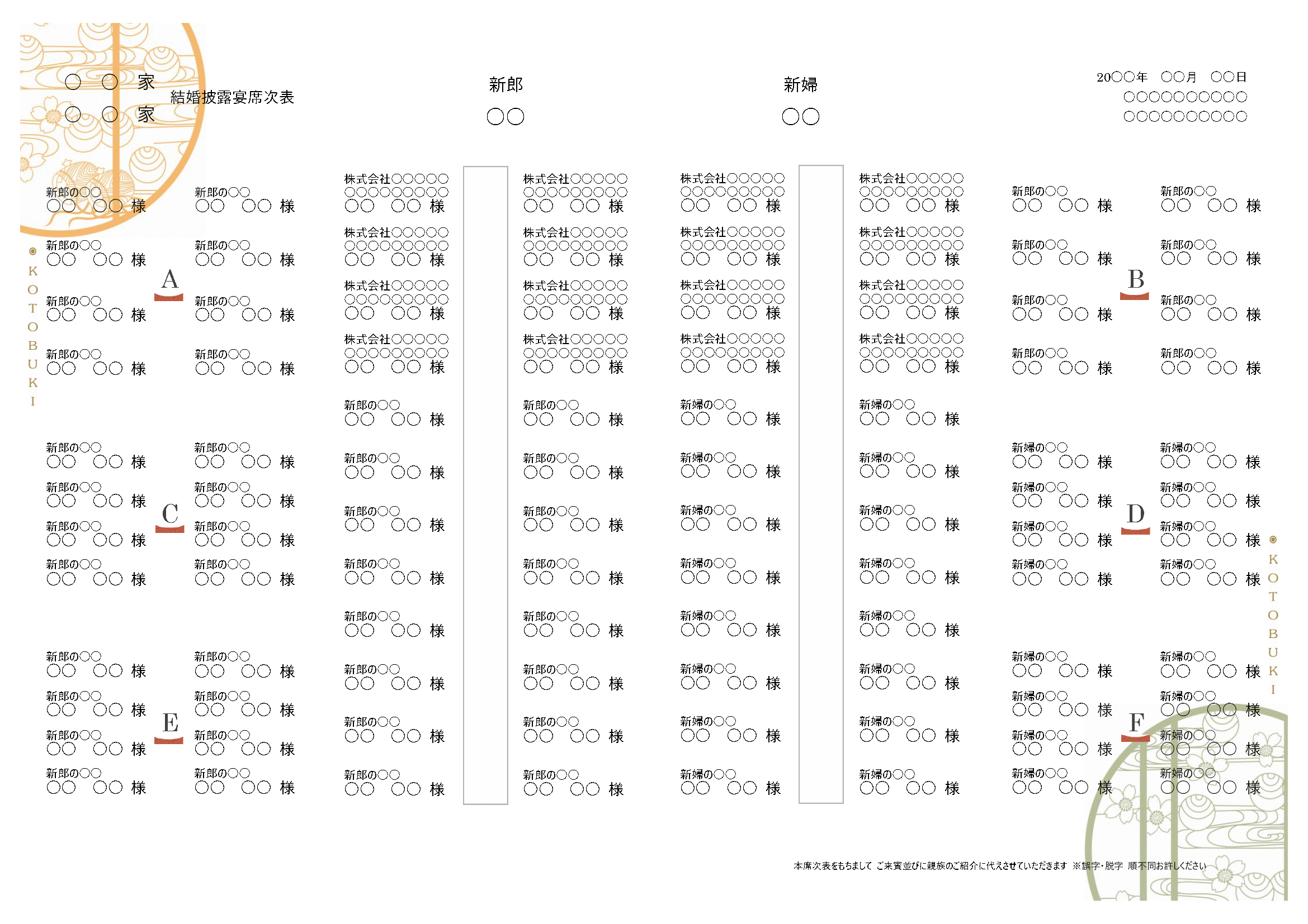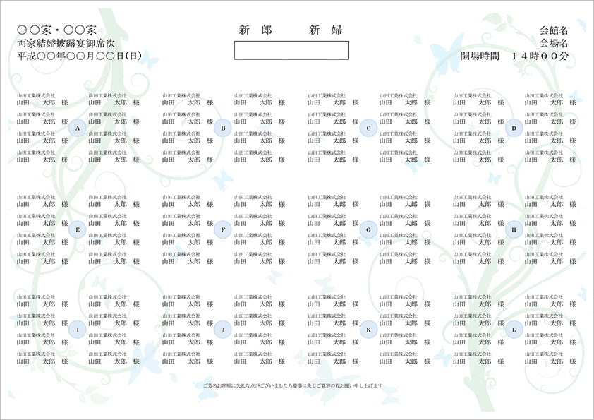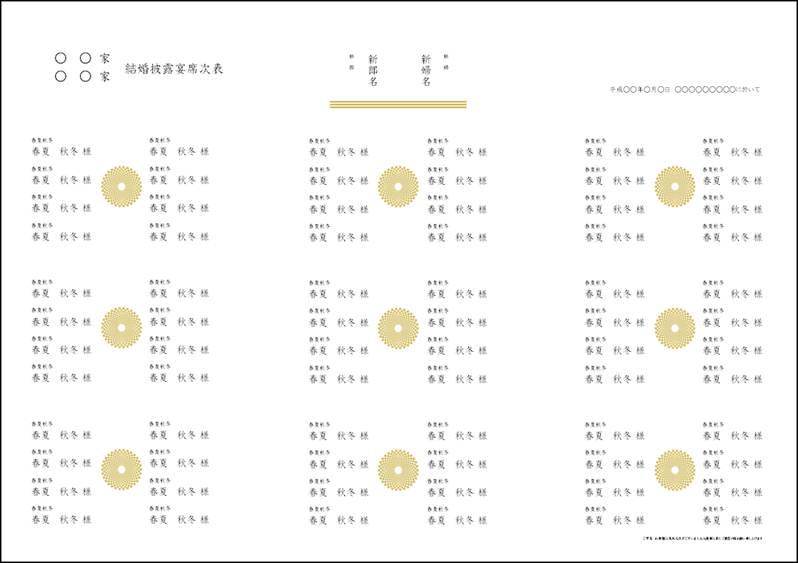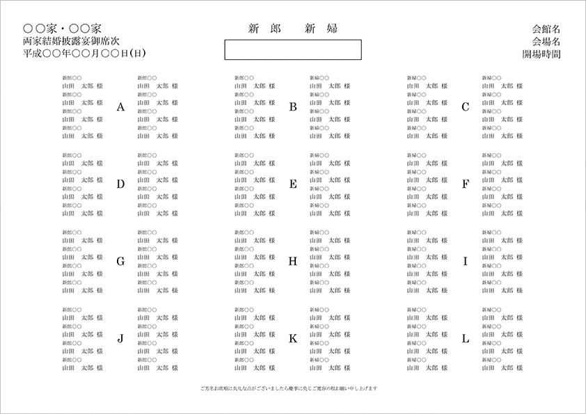 席次表 A4サイズ横 - ファルベ テンプレートサイト。