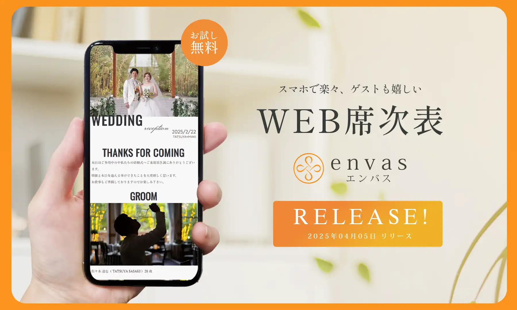 WEB席次表 9,800円 業界最安値! おしゃれで簡単に無料作成envas。