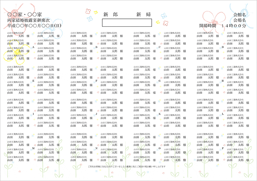 ドレスとタキシードとお花の席次表手作り 無料テンプレートARARS。
