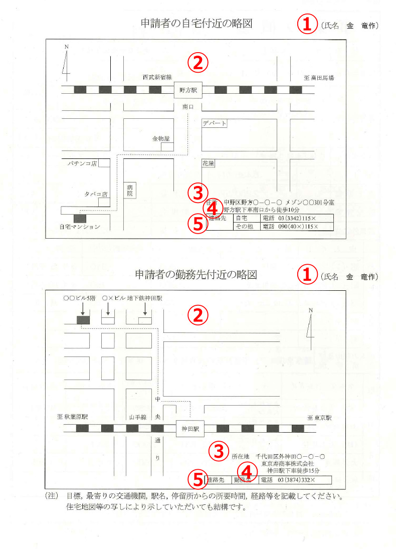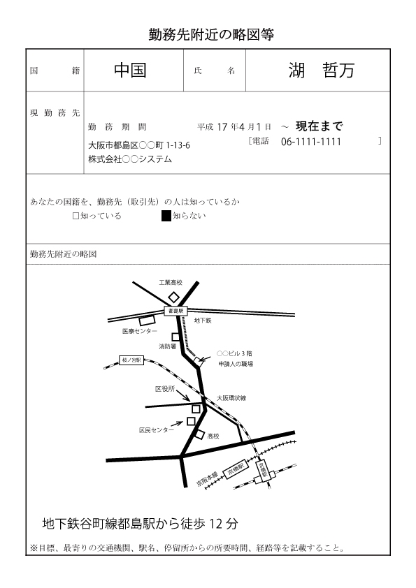 自宅・勤務先付近の略図」の書き方解説就労ビザ・経営ビザ申請のご相談は大阪の行政書士法人新法務事務所。