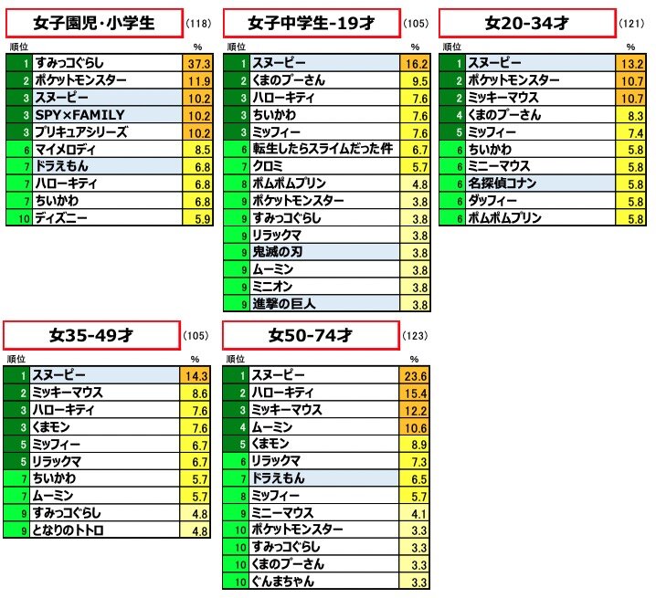 2023年版 子どもたちの人気キャラクターランキング、 子ども総合で「ドラえもん」が1位、おんなの子は「すみっコぐらし」が3連覇~人気ランキング 上位10キャラクターをご紹介~。
