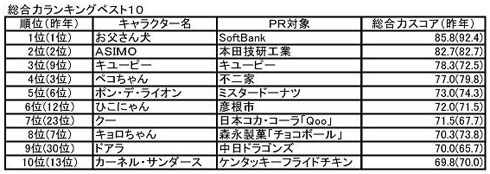 企業や商品のPRキャラクター、ブランド力1位は「お父さん犬」 - ITmedia ビジネスオンライン。