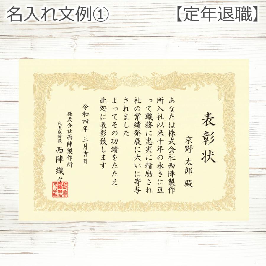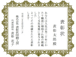 文例表彰状 定年退職表彰状印刷工房 明瞭価格本格的な賞状・表彰状・感謝状を作成印刷。