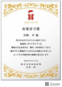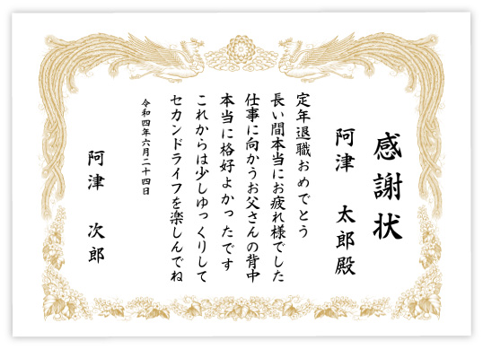 退職退任感謝状│賞状・表彰状・感謝状の名門タカ印公式印刷。