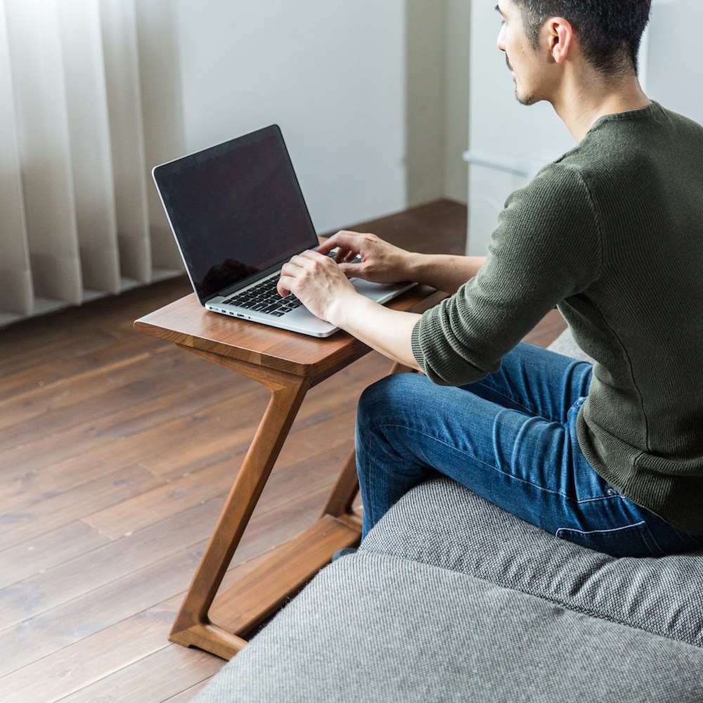 ソファに座って快適な在宅ワークを支えるADRS ハント サイドテーブルberse バース。