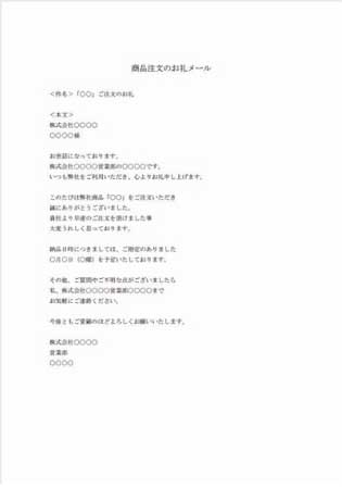 ビジネスメール 注文のお礼ビジネス書式テンプレート 経費削減実行委員会。