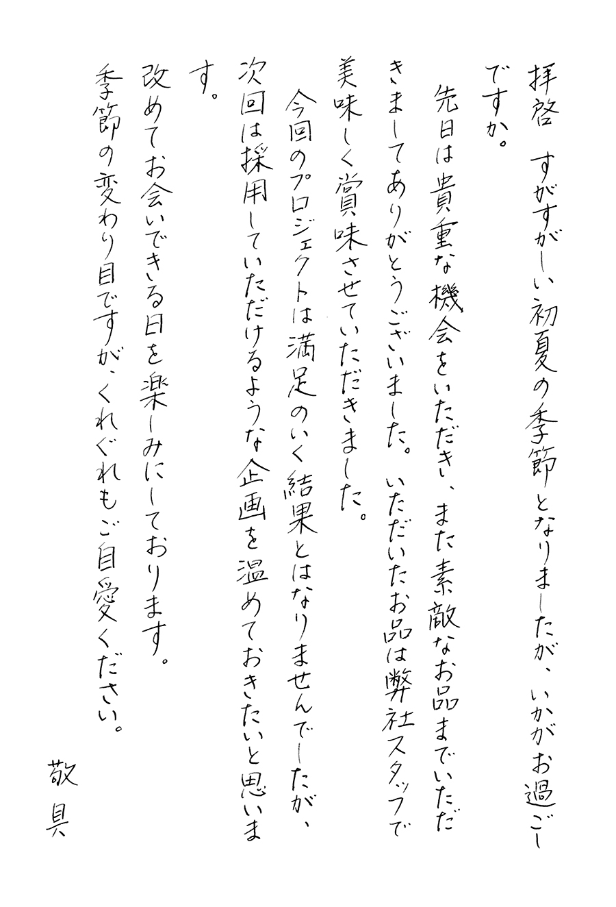 品物を頂いたお礼状メッセージカードやサンキューカード、手紙の手書き代行なら代筆ドットコム。