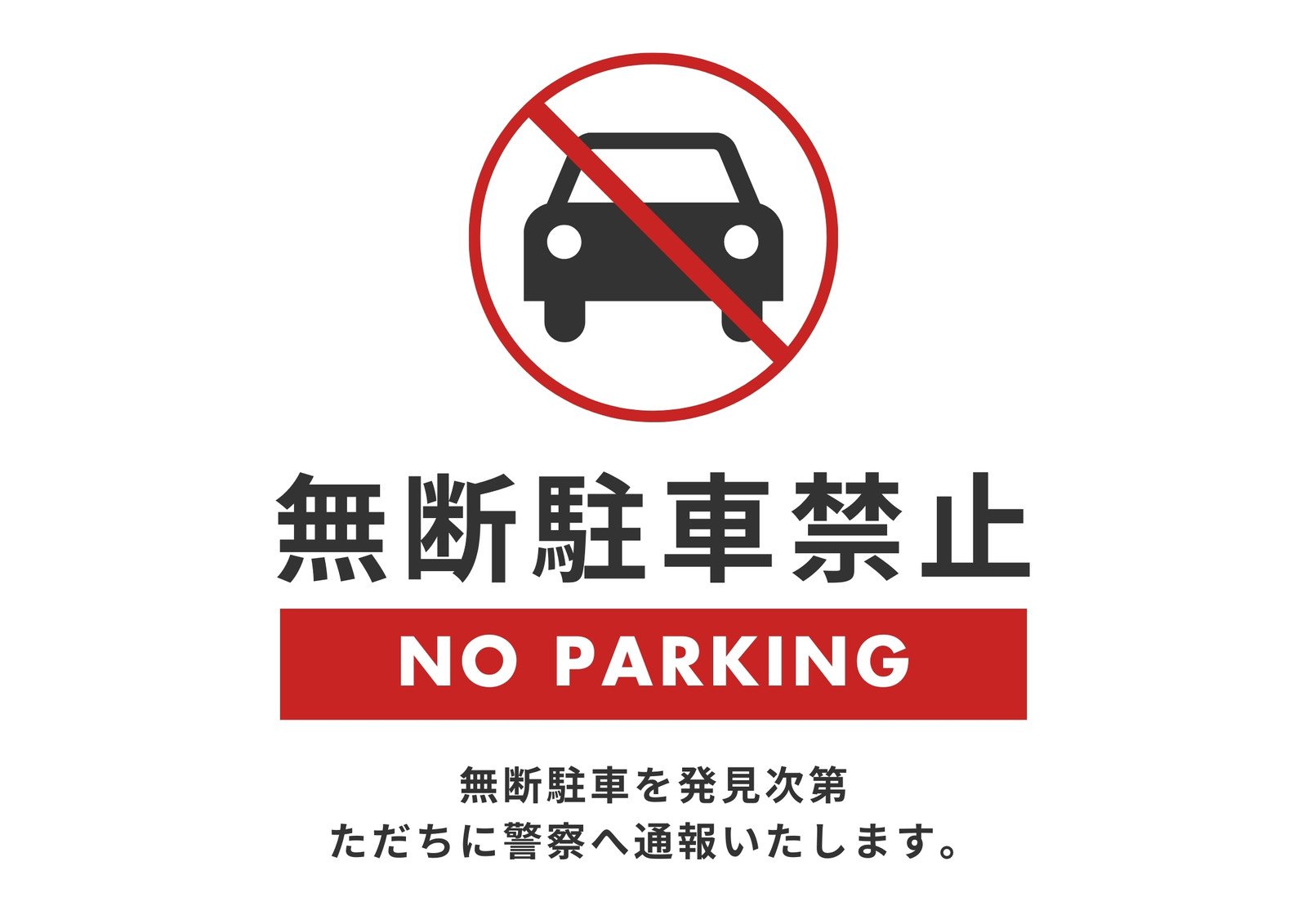 駐車禁止の張り紙のテンプレートは路上や施設での無断駐車を防ぐ:ビジネス・シンプルTemplate-Digital。