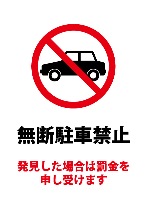 無断駐車禁止・罰金警告の注意案内貼り紙テンプレート無料・商用可能 注意書き・張り紙テンプレート ポスター対応。