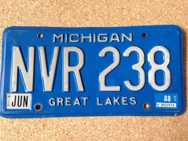 驚きの破格値,安いアメリカ ミシガン州発行ナンバープレート NVR238 90年代後半。