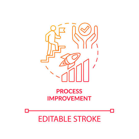 プロセス改善の概念アイコン。ワークフロー最適化のアイデア細線のイラスト。仕事の品質向上、スキル開発。ベクトル分離輪郭 RGBカラー描画。編集可能ストロークのイラスト素材・ベクター Image 142604486。