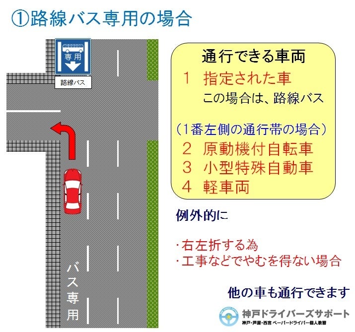 専用通行帯と優先通行帯って何が違うの? - ペーパードライバースクール運転教室スタートライン 愛知・名古屋・岐阜・三重・滋賀・福井・長野。