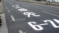 路線バス等優先通行帯 道路標識写真 規制標識 327の5。