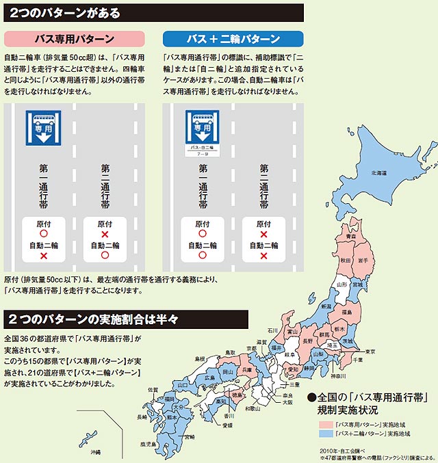 バスレーンの通行ルール:専用と優先の違いバイク用品 研究所。