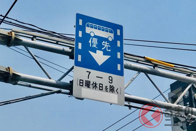 知らずに通るとうっかり違反!? バスレーンの「優先」「専用」何が違う? 一般車も走って良い?くるまのニュース。