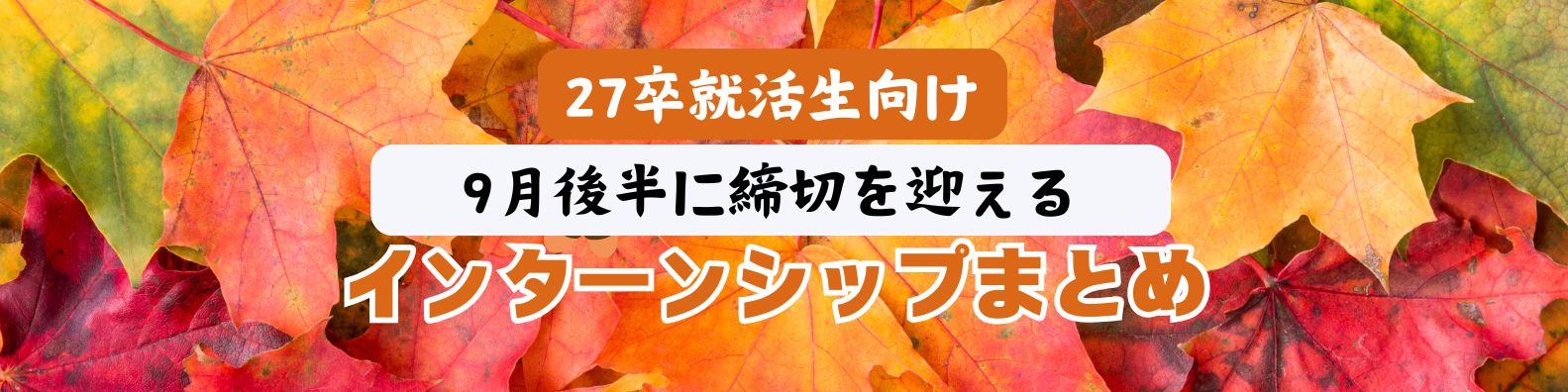 27卒向け 9月後半 16日~30日 にエントリーの締切を迎えるインターンシップまとめ就職活動支援サイトunistyle。