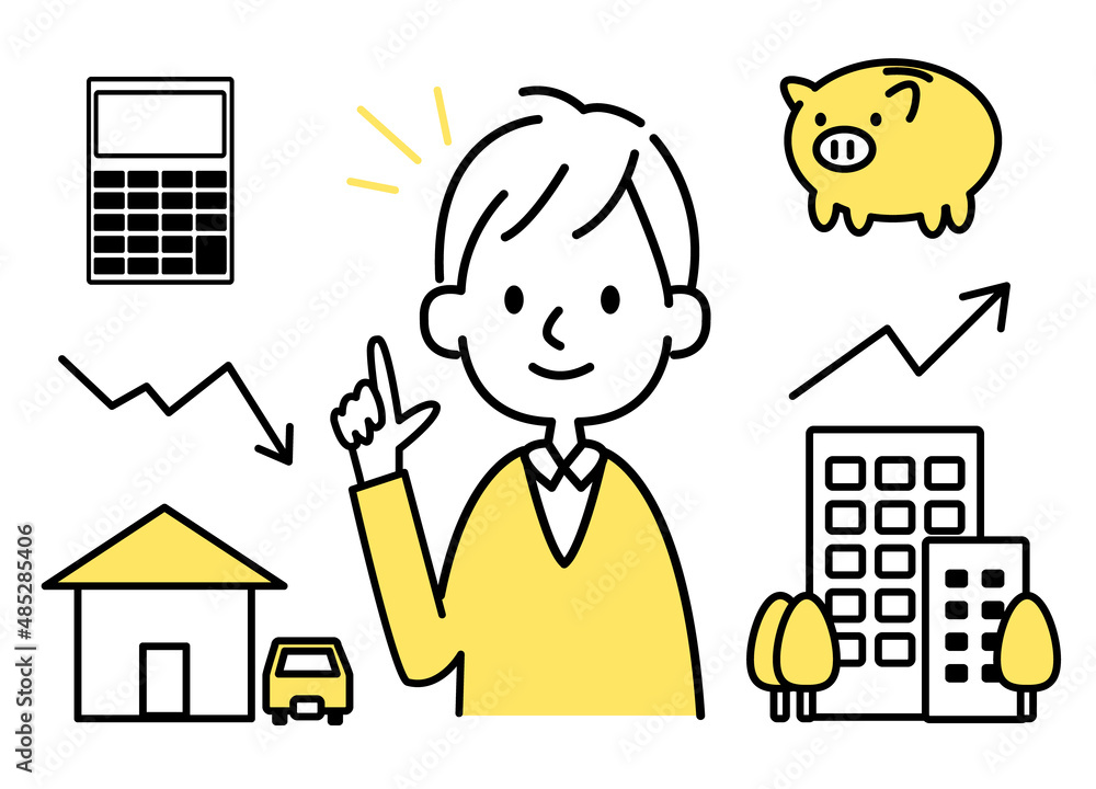 Vetor 不動産投資をする男性のイラストとアイコンのセット ベクター素材 相続税対策 do StockAdobe Stock。