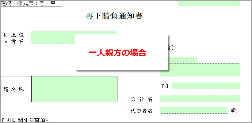 再下請負通知書 一人親方の場合の書き方とは? –全建統一様式 安全書類の記入例とダウンロード建設グリーンファイル.com。