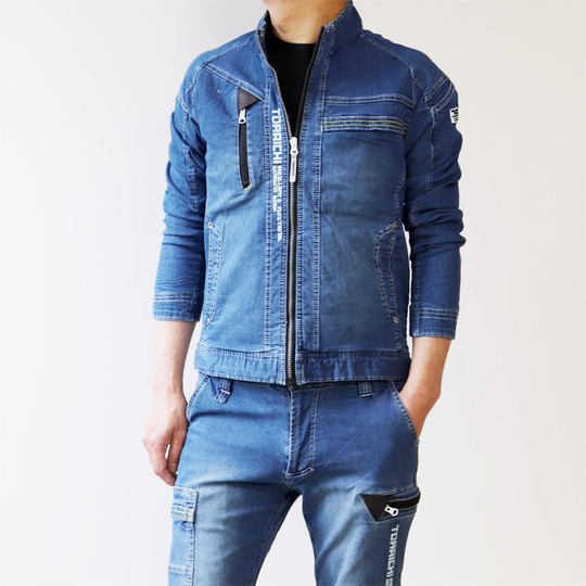 武蔵野ユニフォーム寅壱 8920-124 8920-235 ビンテージ加工のデニムワークウェア 上下セット ジャケット。