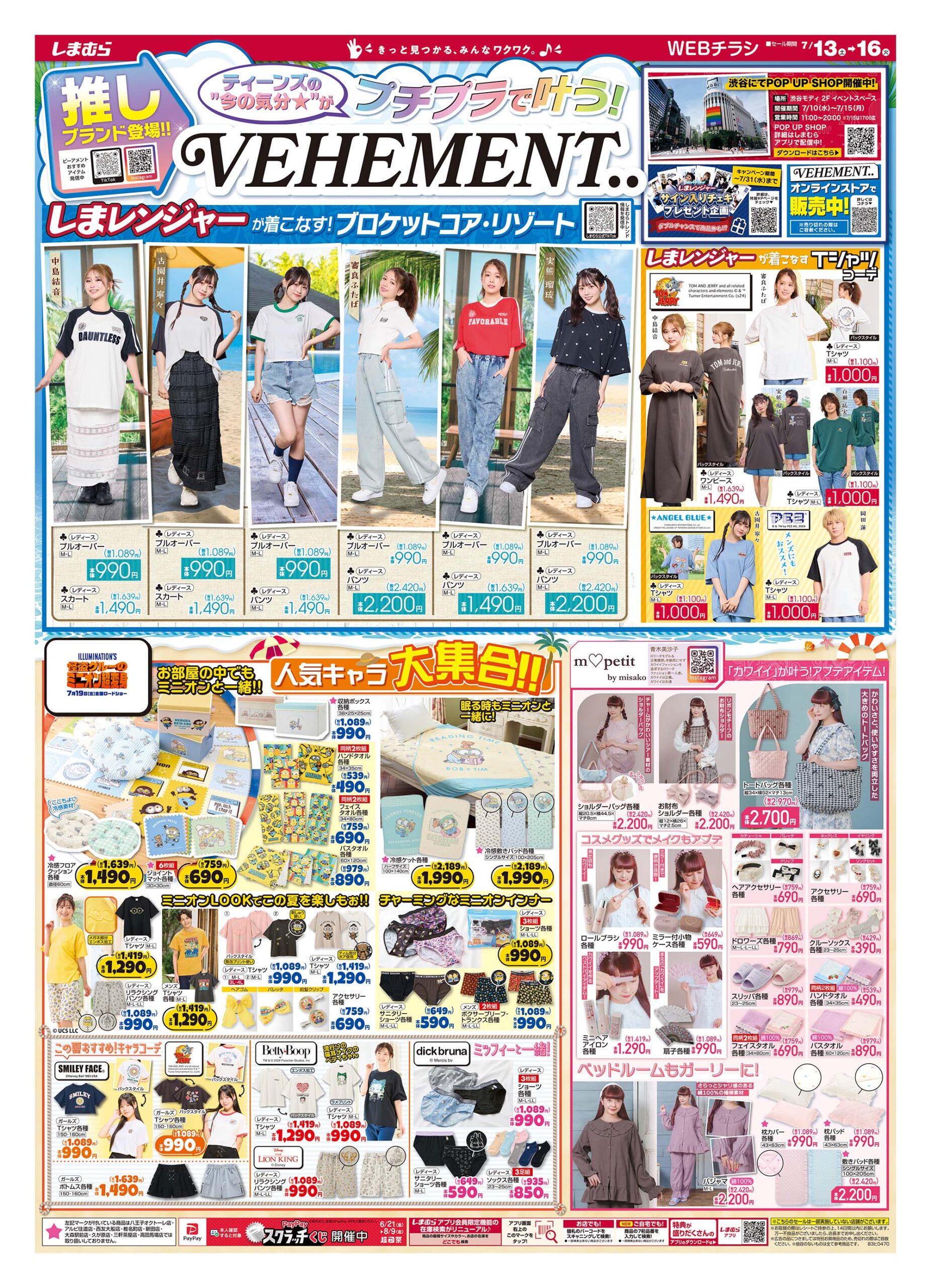 しまむらチラシ 夏のお出かけ&帰省準備特集!SNSで話題の「モリノリンクル」コラボ。