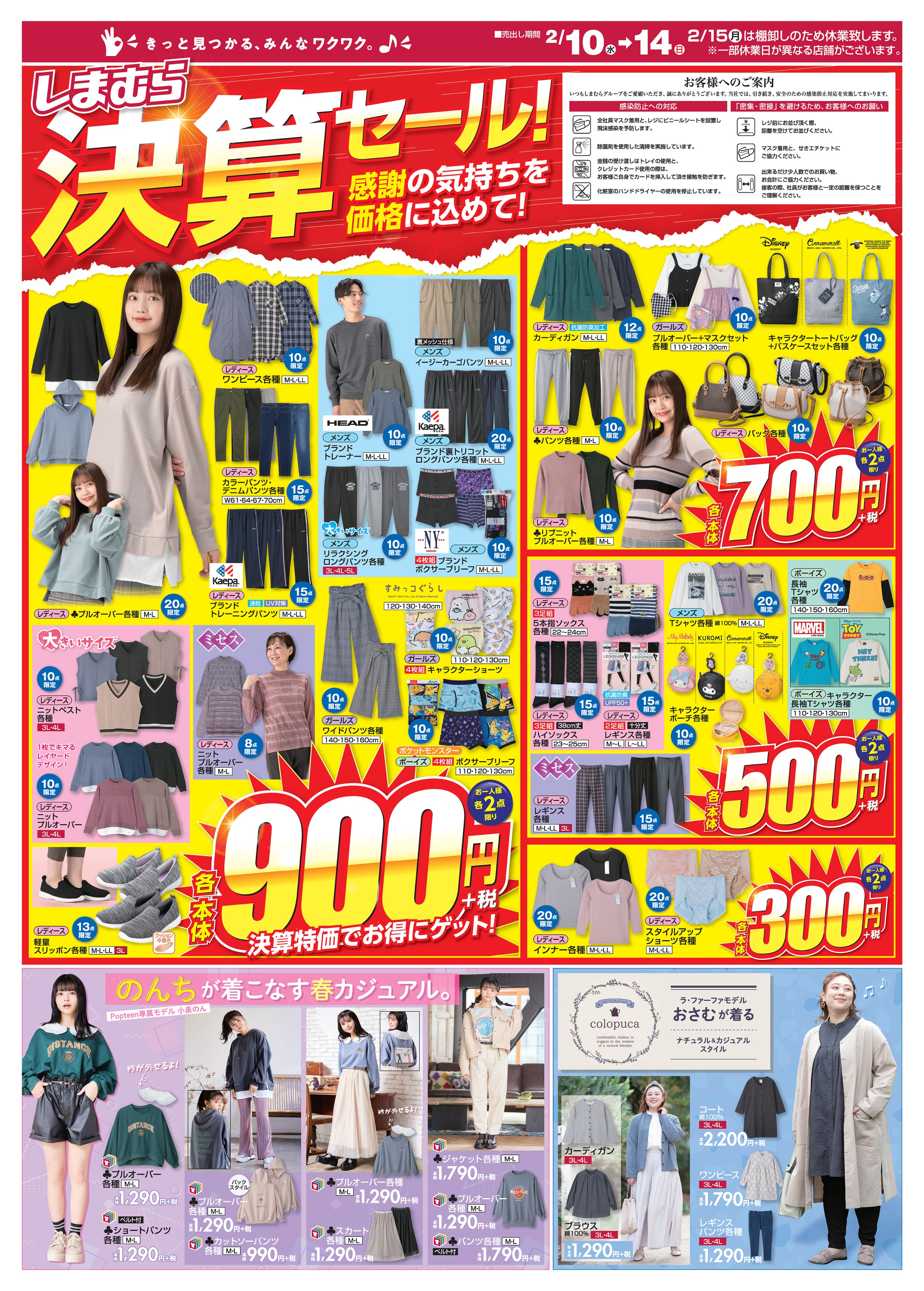 しまむらグループ各店舗で、「初売り」チラシを開催します! お買得商品を取り揃えて、ご来店をお待ちしております。株式会社しまむらのプレスリリース。