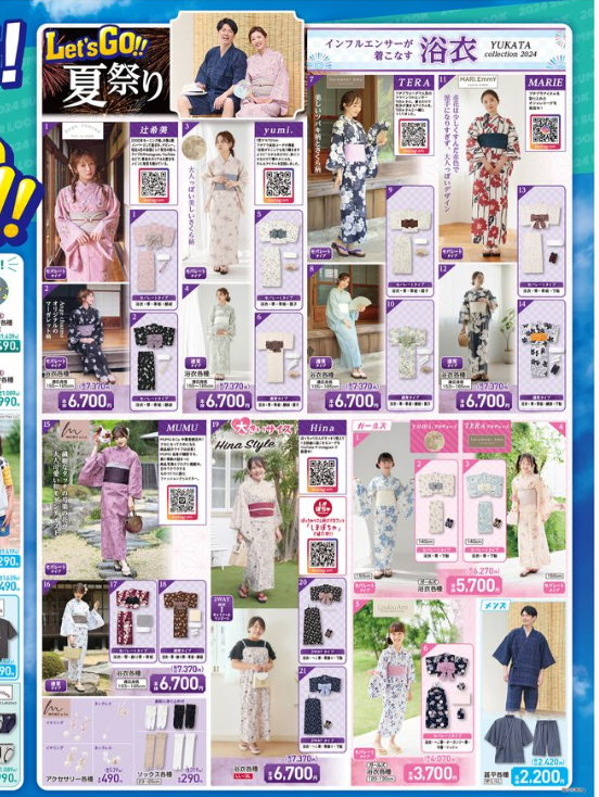 しまむらチラシ速報 2024年7月2日~インフルエンサーの夏コラボ 浴衣も広告の品で発売。