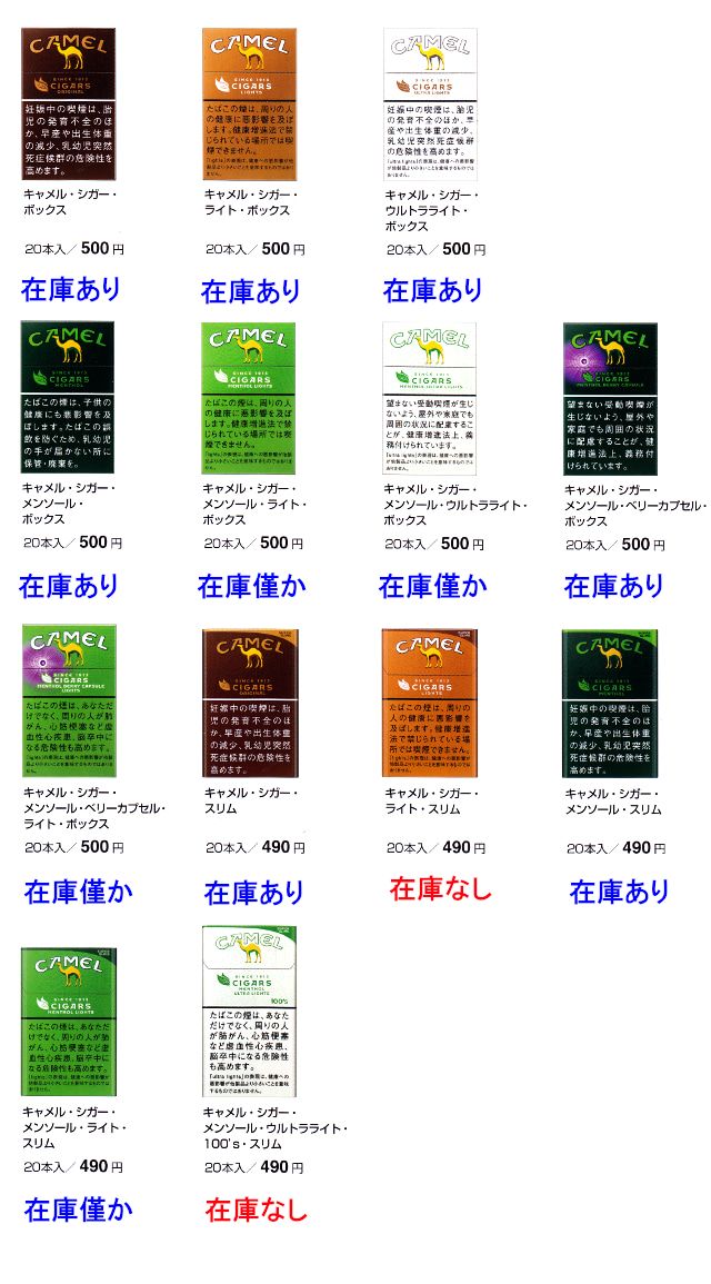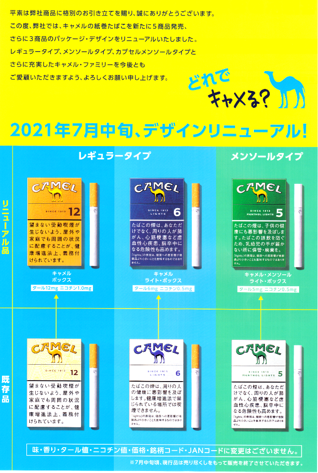 本日、キャメルの紙巻 新ラインナップ!5種類が一挙、入荷しました!大阪 京橋たばこセンターこだま 新着情報。