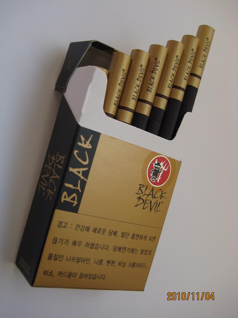 タバコ百科事典 on X: "銘柄紹介 ブラックデビルゴールド タール:6mg ニコチン:0.4mg 入数:20本 価格:460円 レビュー箱ともに巻紙がゴールドでとてもオシャレ http:t.co ck5FuxLE8t"X。
