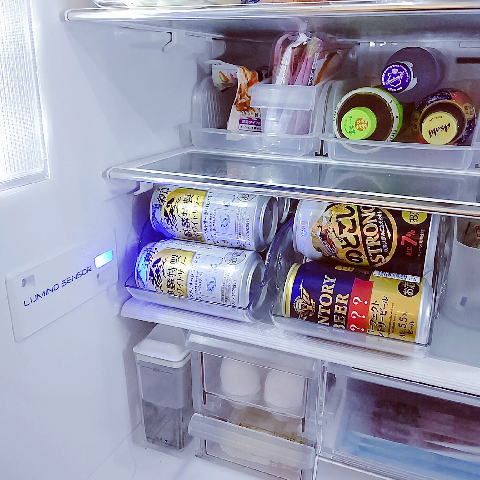 冷蔵庫 収納 ペットボトル ストック 缶収納ラック缶ビール ホルダー 4本収納 ケース ドリンク収納 取っ手付き 冷蔵庫上ラック缶備蓄やまとめ買い対策に。箱買いペットボトルの収納アイデアキナリノ。