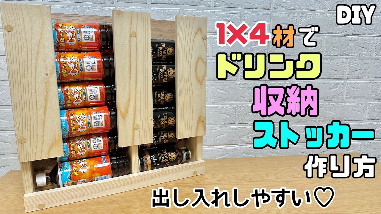 DIY収納ドリンクストッカー 1×4材でドリンク収納ストッカーの作り方!!すぐに残量もわかる!!ストック収納にぴったりです!! 収納 diy ストック収納 1×4材。
