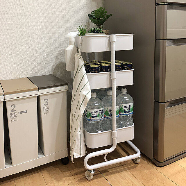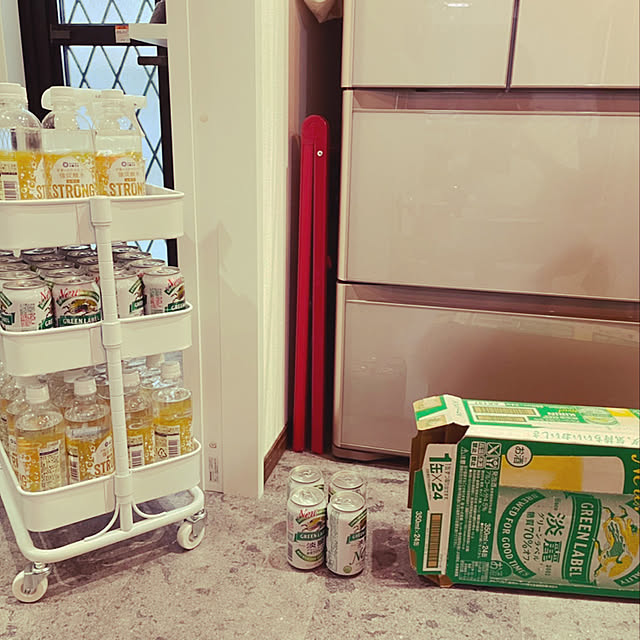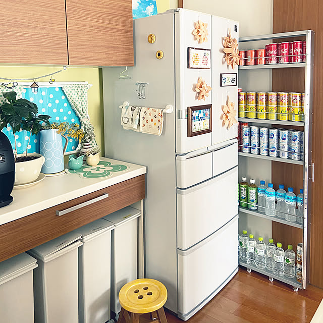 我が家のドリンクパントリー🪄,いつもの補充風景+アンチへ反論。笑, ., 前の家から愛用してる隙間収納。,冷蔵庫横のデッドスペースを有効に使える棚!!, 狭い賃貸&飲み物の消費がすごい我が家は, 1番買って良かったってくらい愛用してる✨✨, .,10cmから2センチ刻みで20cmまで選べて, カラーもキッチンに馴染む4カラー展開!!, ., 楽天ルームに載せてます🌈, ., .,。
